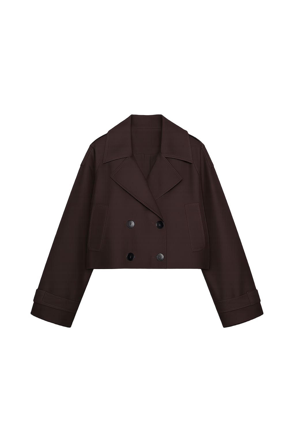 Timeless tailoring. Modern edge. The Zoë Arlen Trenchcoat brings a contemporary twist to the classic trench. Defined by its cropped silhouette and structured fit, it offers a fresh, elevated take on refined outerwear. Featuring sharp lapels, a double-breasted front, and sleek welt pockets, this piece embodies effortless sophistication. Belt loop detailing adds subtle versatility, allowing you to personalize your look with ease.